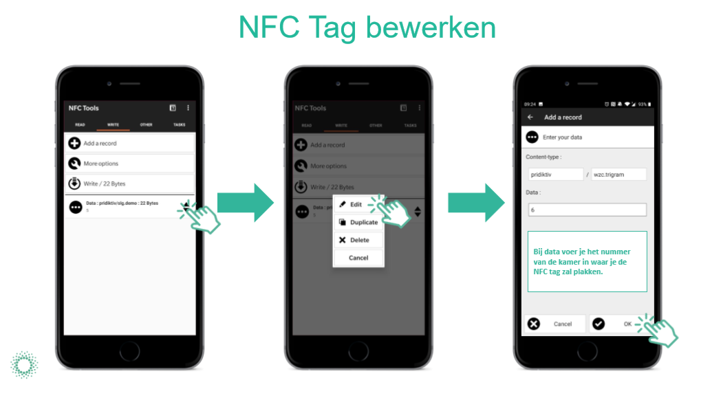 - Onder "Data" vul je het nummer van de kamer in waar je de NFC tag zal plakken.